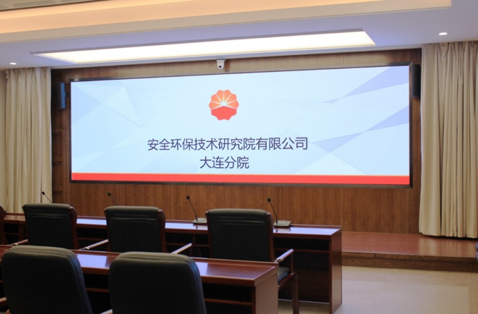 中國石油集團安全環保技術研究院1層視頻會議室創新型的運用0.93mmLED顯示屏,不僅滿足單位召開視頻會議室使用,同時可用于超高分圖像的展示工具,對研究院研發團隊成果展示、實驗過程分析提供保障。同時對現有視頻會議功能進行升級,由原來模擬、標清視頻會議形式升級為高清、4K會議,